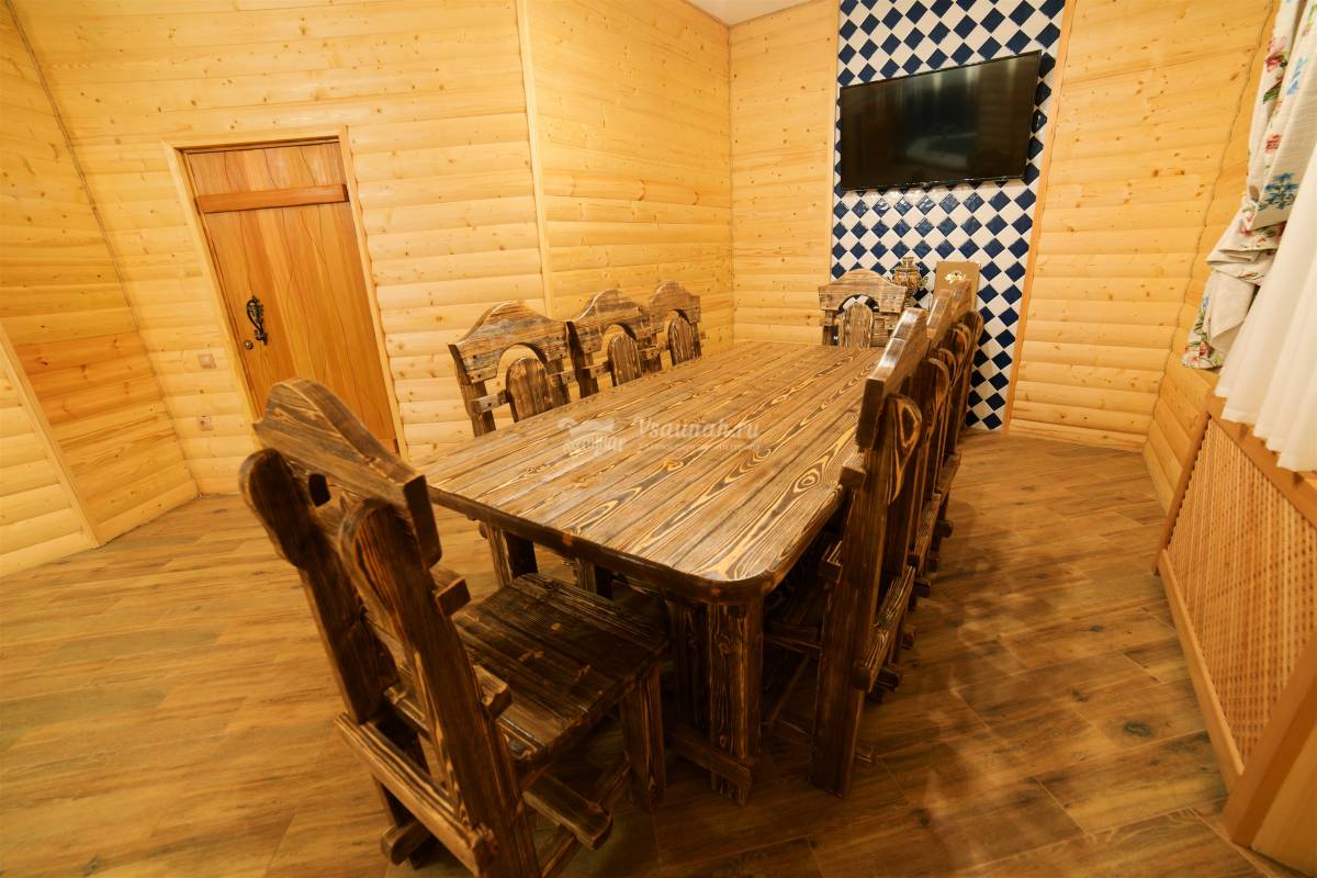 В бане имеется гостиная комната с великолепным интерьером. Она идеально подходит для посиделок больших и веселых компаний. Для тех, кто желает уединиться в бане "Кристалл" имеется комната отдыха с большой красивой кроватью.